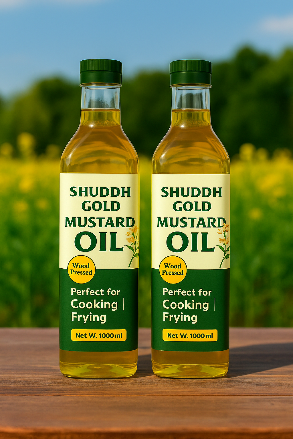 Experience the natural goodness of Shuddh Gold Yellow Mustard Oil, extracted using the traditional wood-pressed (Kolhu) method to retain its rich flavor, nutritional value, and health benefits. Made from premium quality yellow mustard seeds, this oil is a staple for every kitchen, perfect for cooking, frying, and pickling.